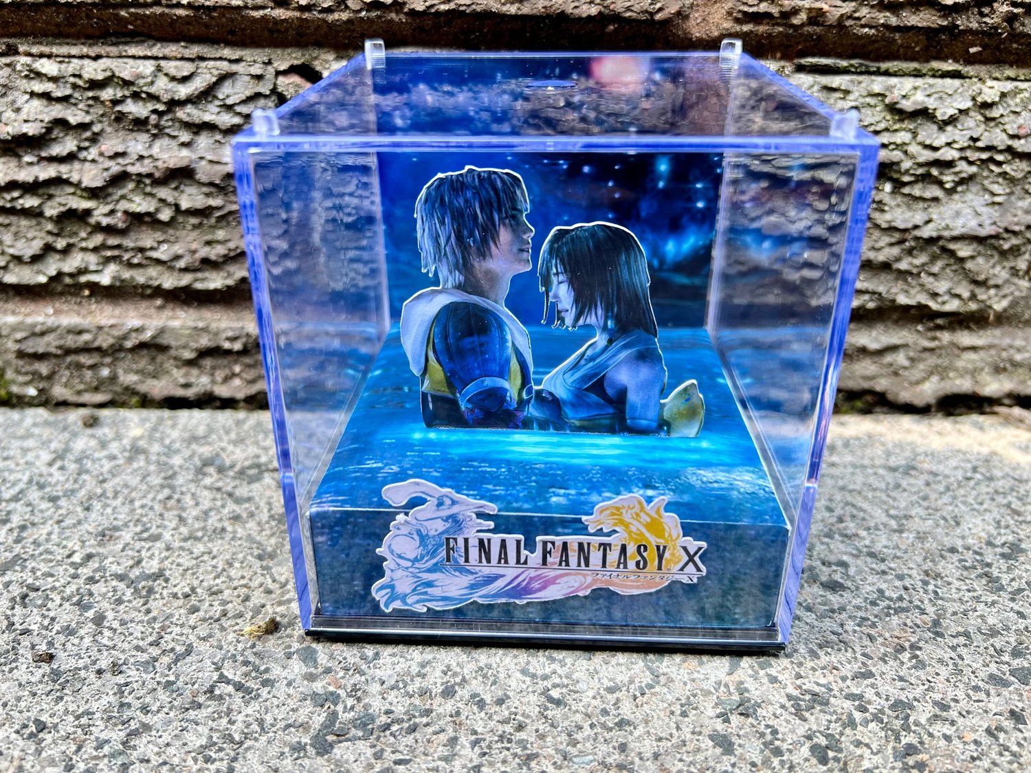 Decorate your home, gaming room or workspace with this nostalgic handmade 3D gamer cube diorama featuring Tidus & Tuna from this iconic scene from Final Fantasy 10!