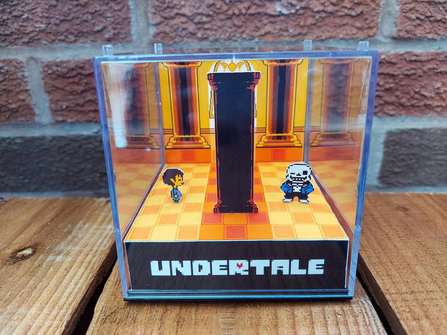 Decorate your home, gaming room or workspace with this nostalgic handmade 3D gamer cube diorama featuring Frisk Vs Sans from UNDERTALE!