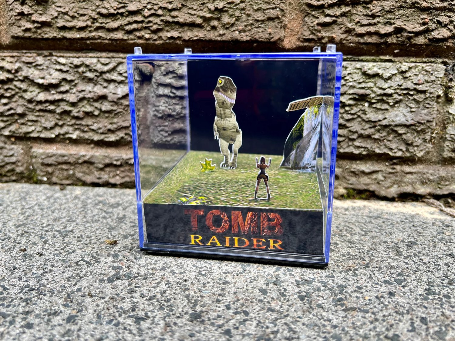 Decorate your home, gaming room or workspace with this nostalgic handmade 3D gamer cube diorama featuring this scene with Lara Croft from TOMB RAIDER!
