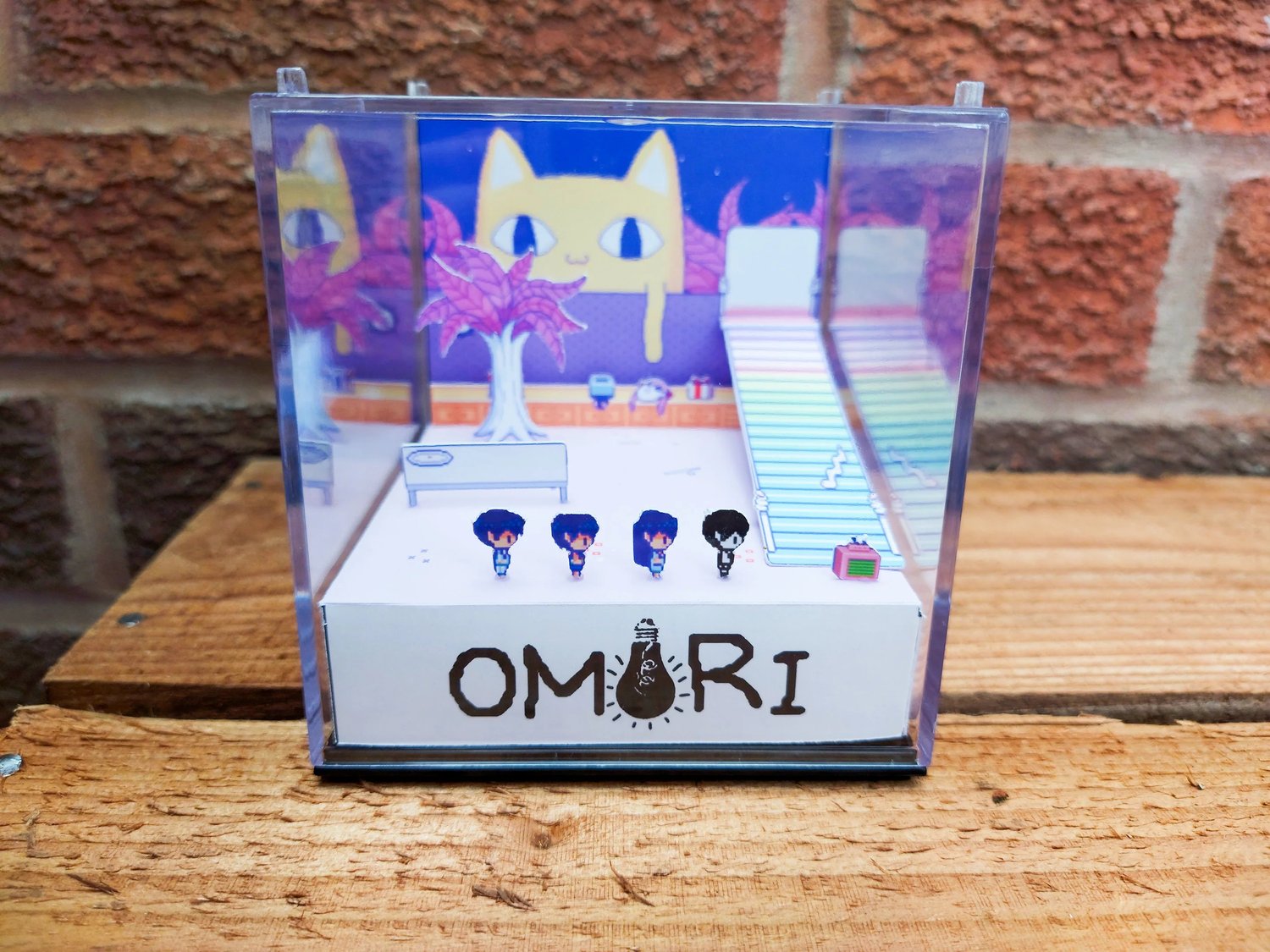 Decorate your home, gaming room or workspace with this handmade 3D gamer cube diorama featuring the very aesthetically pleasing Neighbor's Room from OMORI!